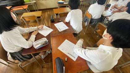 (4)美術?の授業の様子です。2つの選択肢。どちらも良いところ、悪いところのある、究極の選択を迫られる内容でした。