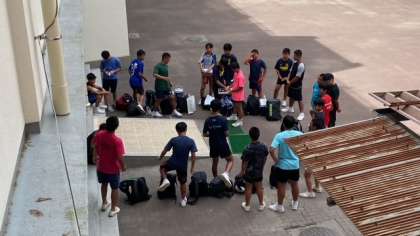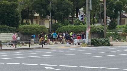 ラグビー部は、千島のグラウンドで活動しています。ちょうど練習がすんで学校に戻ってくるところに出会しました。