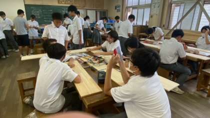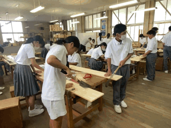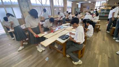 慣れないノコギリを使って、木を加工していきます。何ができあがるのかが、楽しみですね。