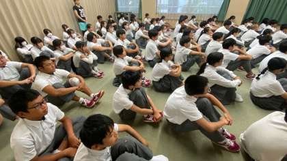 全体指導では、仕事をする意義や平均的な生涯賃金などを生徒の皆さんが知っている有名な方を例に学びました。
