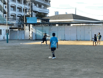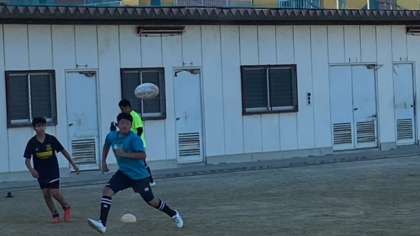 夕方、ラグビー部がボールのパスの練習をしていました。丸くないボールのキャッチって難しいそう。なのに、しっかりとキャッチ!すごい!
