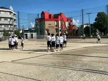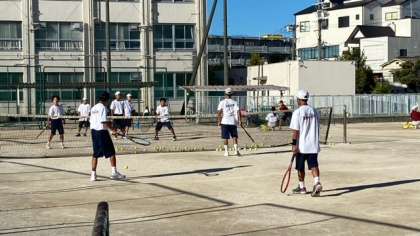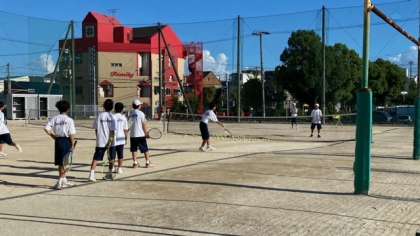 グラウンド東側では、硬式テニス部が活動中。ちょっとだけコートが狭いので、窮屈そうですが、鍛錬しています。