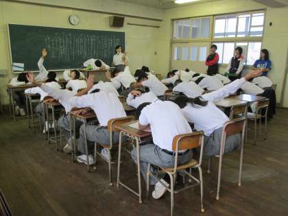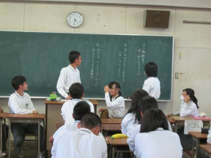 生徒会執行部が、まず前期を振り返り、「あいさつ運動」など取り組みの成果と反省を、そして、各学年、委員会からそれぞれの成果と反省が出されました。