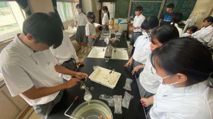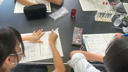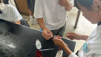 発生した気体に線香を近づけて見ます。どうなったかな?後からプリントにまとめていきます。