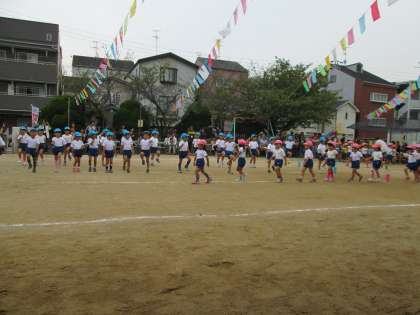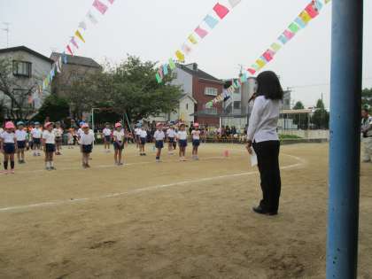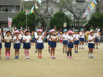 入場行進、園長先生のお言葉の後、みんなで「うんどうかいの歌」を歌いました。