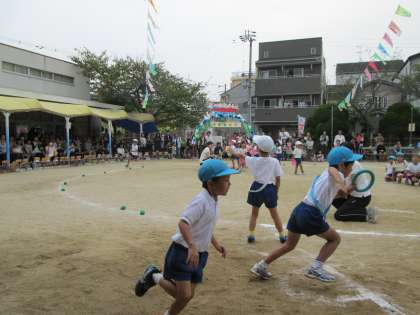 抜きつ抜かれつ、園児と言えど、手に汗握ります。