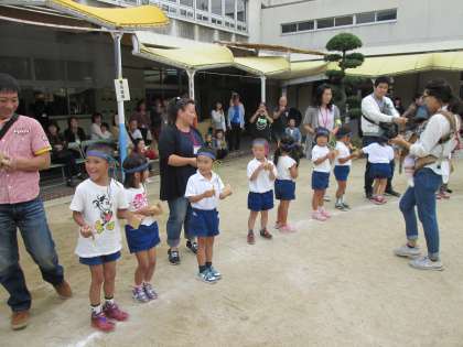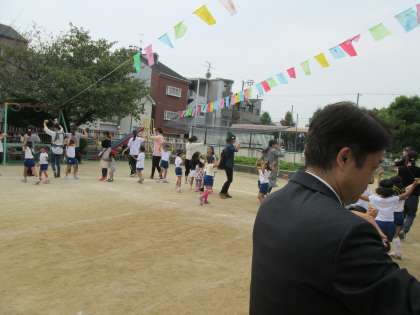 園児さんは、その手に鳴子を持ち、先生方も、保護者・来賓も参加しました。