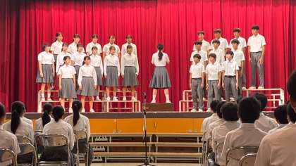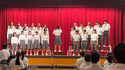 まずは、3年生の合唱の発表です。2組、3組、1組の順番で登壇します。