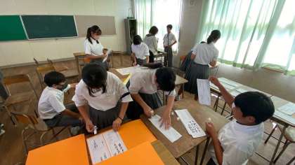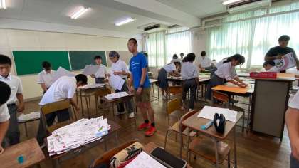リハーサル後に学校に戻り、校内の各教室では展示発表の準備に入りました。