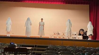 演劇部の発表です。毎日の練習の成果を発揮します。
