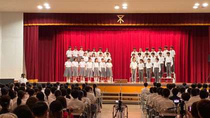 プログラム2番は、1年生合唱コンクール金賞学級の発表です。1組が金賞を受賞しました。これからまだまだ成長してくれるでしょう^o^