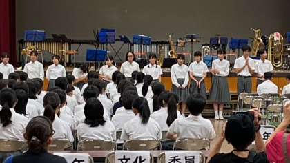 何曲か演奏した後、いよいよ3年生の金賞の発表に入ります。3年生の演奏者と指揮者の皆さんに大きな拍手が送られました。