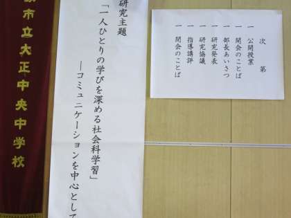 本日、午後から開催された「大阪市中学校教育研究会研究発表会」の社会科の部に参加してきました。