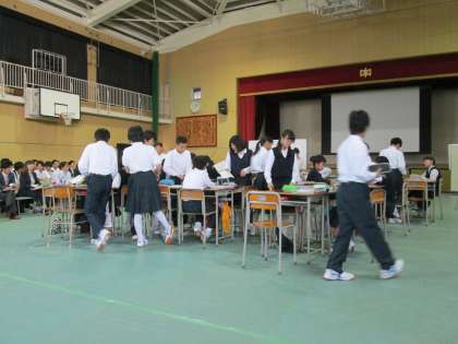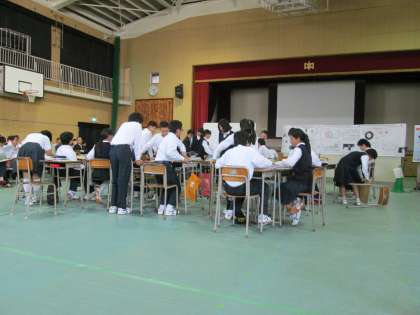 生徒たちは、担当しているテーマのところに移動して、自分の考えをまとめます。
