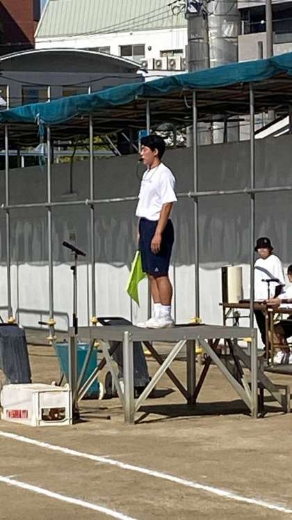 まずは、開会式の練習です。体育委員長の指揮のもとで進んでいきます。行進は、吹奏楽部の演奏によります。
