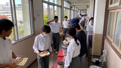 坦々麺は、中国の四川料理を代表する麺料理の1つです。給食の坦々麺は、青梗菜などの野菜や麺が入った汁麺の上に、味付けした肉味噌をのせて食べます。
