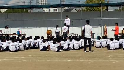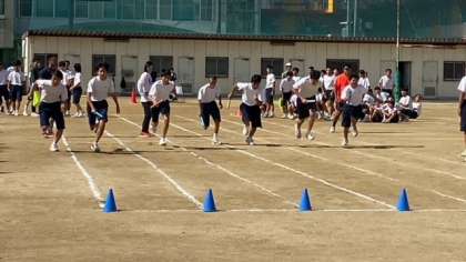 午後の部は、プログラム9番、部活動対抗リレーから始まります。昨年度優勝したラグビー部とソフト、テニス部のトロフィーの返還からスタート。今年はどのクラブが栄冠を手にするのか!