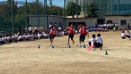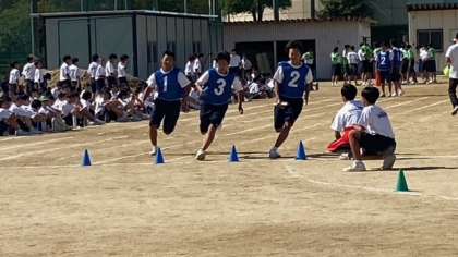 プログラム13番、男子リレーです。このリレーも、全学年の男子の足自慢が揃って競い合います。当日の活躍に期待しましょう!