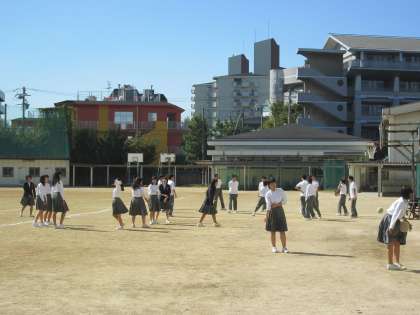 昼食後の休憩時間、昼休みは天気が良ければ、生徒たちはグラウンドでボール遊びをする人もいます。
