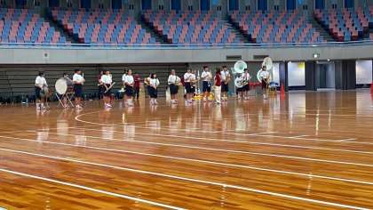 吹奏楽部の演奏に合わせて入場していきます。