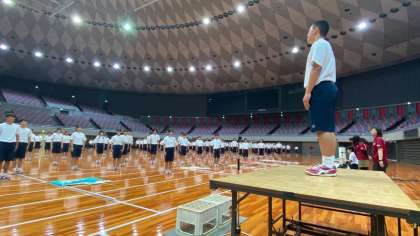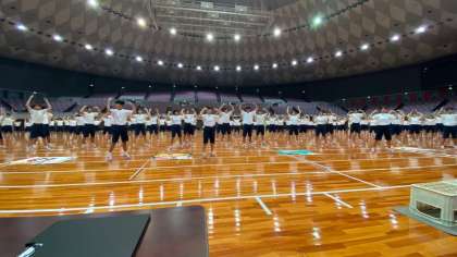 プログラム1、合同体操です。む、む、む。きれいに揃ってますね(^。^)