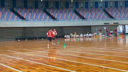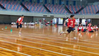 プログラム5番、男女混合リレーです。まずは1年生、力合わせて頑張りましょう。