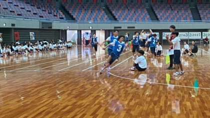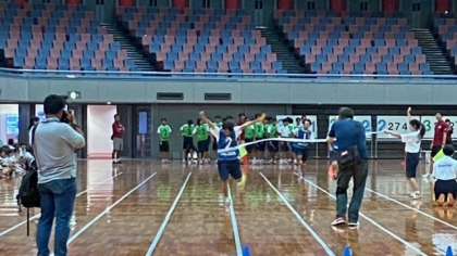 続いて2年生が走ります。ゴールテープを切ったのは2組でした。おめでとうございます。