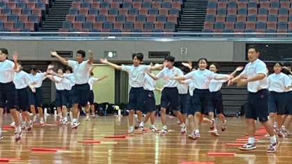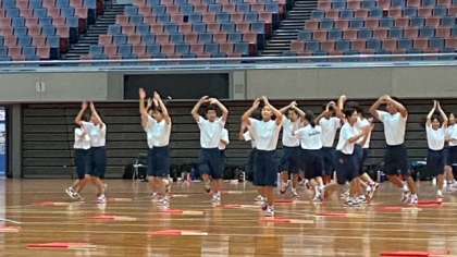 プログラム14番、3年生による学年種目『学年演技』です。まずは、手拍子によるリズム運動です。