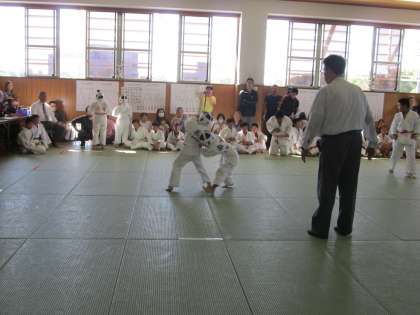 低学年や4年、5年、6年と、道場に通う小学生も、柔道着に身を包み、大きな声援をいただいています。