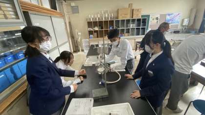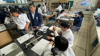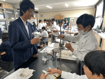 エタノールと水との混合物を煮沸して、その温度と出てきた気体を調べる実験です。