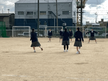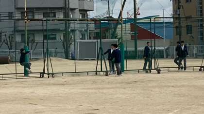 お昼休みに運動場に行ってみると、3年生男子と1年生男子、女子がボール遊びをしていました。