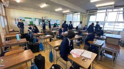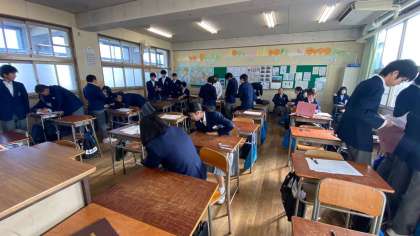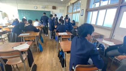 1時間目の英語のテストが終わり、次の国語のテストの準備に入ります。「英語、難しかったわー」「楽勝!」思いは様々ですが、切り替えていきましょう!!