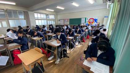令和5年度の2学期末テストは、最終日を迎えました。1時間目の数学のテスト、1年生の様子を見てみましょう。