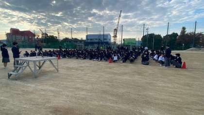 全校朝会は、先週から外で行っていますが、大変寒い朝となりました。地域の方から、北中生がよく挨拶をしてくれると、お褒めのお言葉をいただいていることをお伝えしました。