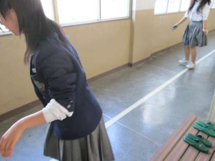 今日も3年女子が、校長室前の廊下をていねいに拭いてくれました。