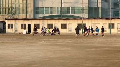 朝の練習で、ラグビー部が頑張っていました。