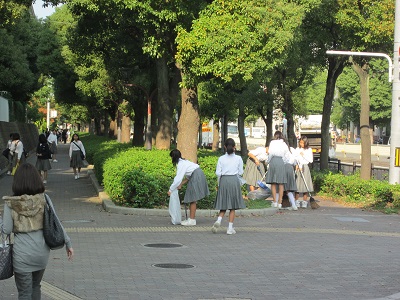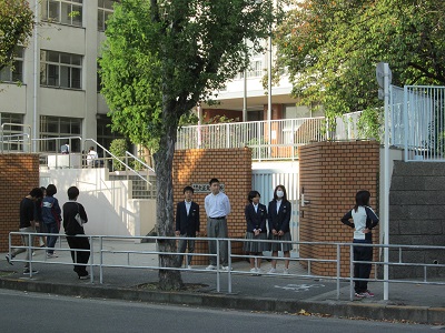 気持ちのよう朝。今朝もあいさつ運動が展開されています。
