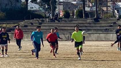 千島のグラウンドをお借りして、ラグビー部が活動していました。