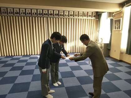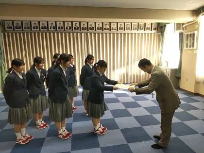 始業式に先立ち、冬休み中に優秀な成績を残した部活動の表彰伝達を行いました。