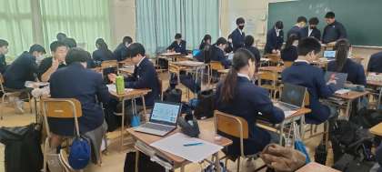 生徒曰く「ボードの効果で暴動がおきませんよーに!」だそうです。