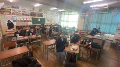 本日、3年生が私立高等学校受験校に出願に行きます。
