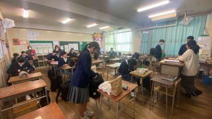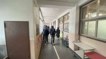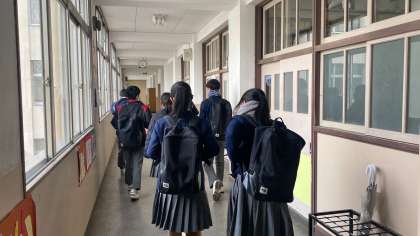 学校別に一緒に出発。最初は、緊張感が感じられませんでしたが、教室を出るとピリッとした様子になりました。
