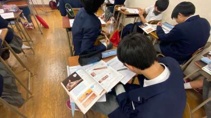 歌の学習の後は、「こと」についての学習です。箏と琴、どっちが正しいのか?弾き方や由来など、社会科の授業と結びつけながら学んでいきます。