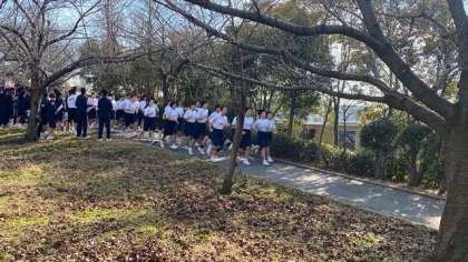 2年生のマラソン大会、いよいよスタートします。まずは、10時11分、女子がスタート!