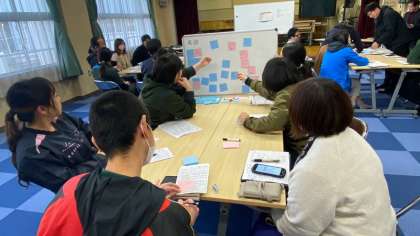 生徒が下校してから多目的にて、本日の授業について、研究討議を実施。子どもたちがわかりやすい授業をめざし、日々鍛錬です!