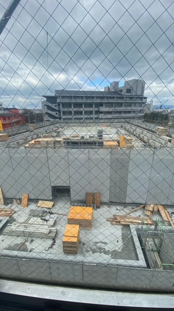下の部分は、玄関の屋根です。2階部分(ギャラリー)と天井部分の建築に入っているようです。