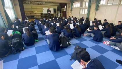 今日の5時間目、多目的室にて私立高等学校入試前の事前指導が行われました。