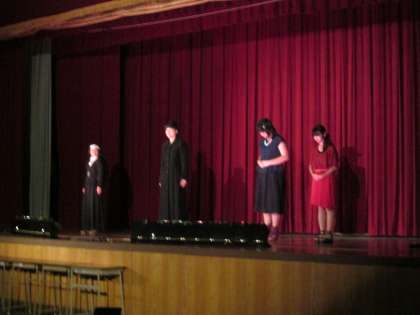 演劇部員は総力を挙げて頑張り、生徒会役員や学級代表など有志が、照明や音響で活躍しました。