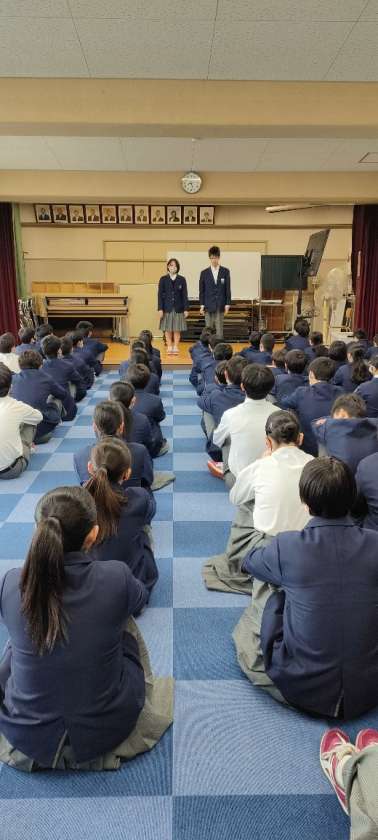学代からの講話は、学年末テストを頑張ること、適切な発言ができていない人がいるので気をつけることがありました。