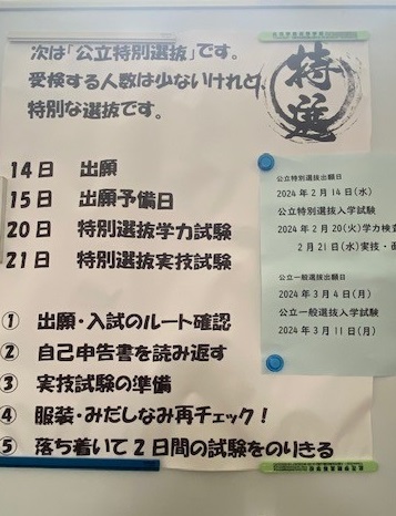 本日から2日間、公立高校の特別選抜入試が2日間にわたり、実施されています。